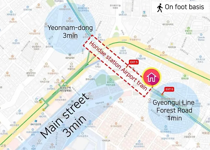 홍대입구 지하철역은 도보로 5 분 이내의 거리에 있으며서울특별시 여러 지역으로 쉬운 접근을 제공합니다.